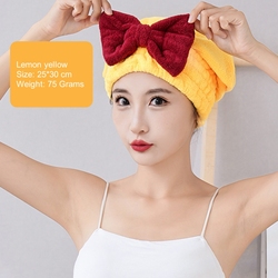 Citron jaune Super absorbant séchage rapide bonnet de douche femmes corail polaire sèche cheveux serviette